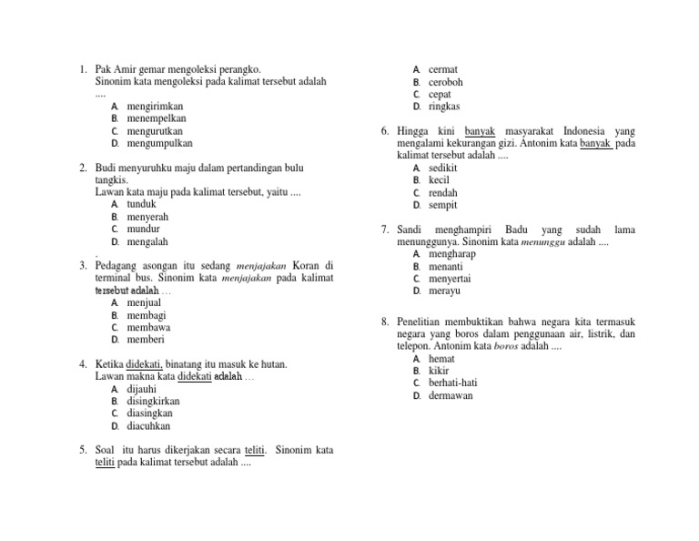 100 Contoh Soal Cpns 2021 Tes Antonim Kata Lawan Kata Abi Awam Bicara from 3.bp.blogspot.com Maybe you would like to learn more about one of these? We did not find results for: Check spelling or type a new query. Lawan kata dari jujur adalah.